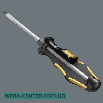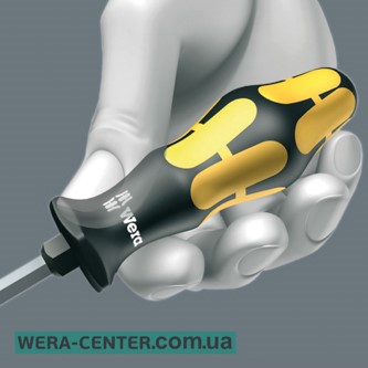 Викрутка-різець Wera для загвинчування, довбання та роботи з проблемним кріпленням. З багатокомпонентною ручкою Kraftform для роботи у швидкому та щадному режимі. Kraftform Plus: тверді зони ручки для високої швидкості роботи, тоді як м'які зони ручки забезпечують передавання великих моментів сили. Зі наскрізним шестигранним стрижнем із високоякісного матеріалу для виготовлення бітів, завдяки чому забезпечується відсутність втрат під час передавання сили навіть у разі ударів молотком. Загартований до в'язання твердості метал унеможливлює утворення відколів або руйнування робочого кінця. З ударним задником для збільшення терміну експлуатації та зниження небезпеки розколювання ручки. Наявність допоміжного шестигранника допомагає за допомогою ріжкового або накидного ключа передавати більший момент сили. Гніздо з внутрішнім квадратом у ударному заднику дає змогу з воротком, тріскачкою Zyklop або ручкою-тріскачкою підвищити передавання моментів сили. Наконечник Wera Black Point і трудомісткий процес загартування забезпечують довгий термін експлуатації наконечника, підвищений захист від корозії та високу точність роботи. Шестигранний край ручки запобігає набридливому перекочуванню викрутки на робочому місці. З маркуванням ручки для полегшеного відбору та сортування інструментів.